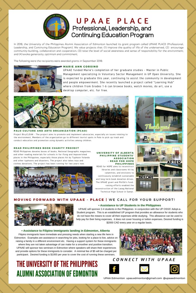interested parties to apply for grants from our UPAAE-PLACE Grant Fund.