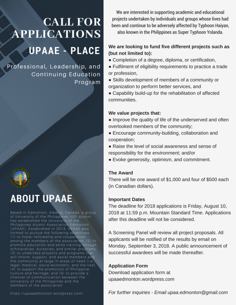 For information, contact UPAAE Secretariat, by e-mail upaa.edmonton@gmail.com .